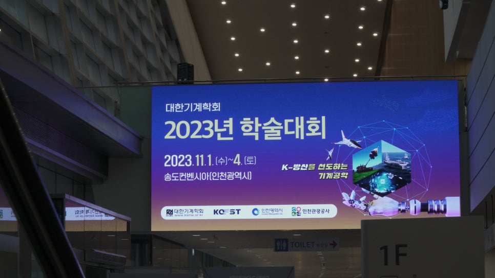 2023년의 대한기계학회 학술대회는 송도 컨벤시아 1층과 2층에서 진행되었어요. 약 45개 사가 기업 부스로 참가하고, 20개의 발표장에서 많은 발표가 이루어졌어요.