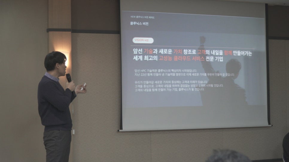 23년을 열심히 달려온 클루닉스에, 대 변화를 통해 무궁무진한 발전을 도모하고자 각 사업부마다 발표 PPT가 준비되었어요. 그 현장을 살짝 구경해볼까요?
