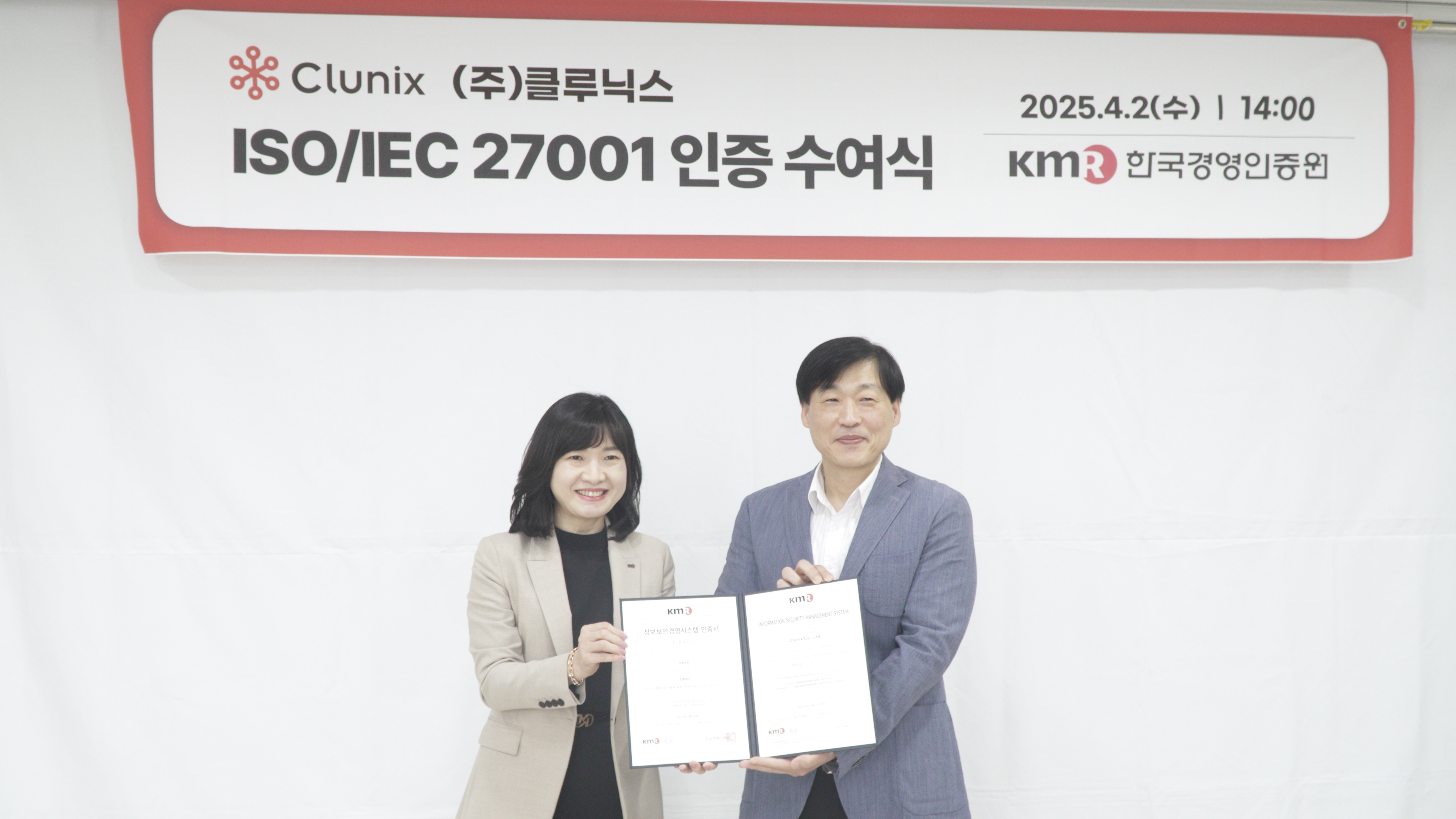 고성능 컴퓨팅(HPC) 솔루션 전문 기업 (주)클루닉스가 한국경영인증원(KMR)으로부터 ISO/IEC 27001 인증을 지난 4월 2일 획득했다.