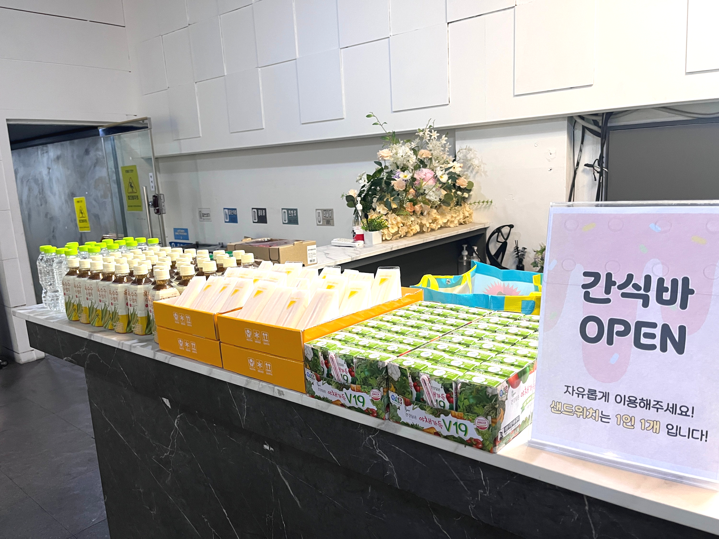 더위를 뚫고 도착한 클루닉스 임직원 분들을 위해 입구에 마련된 간식바!