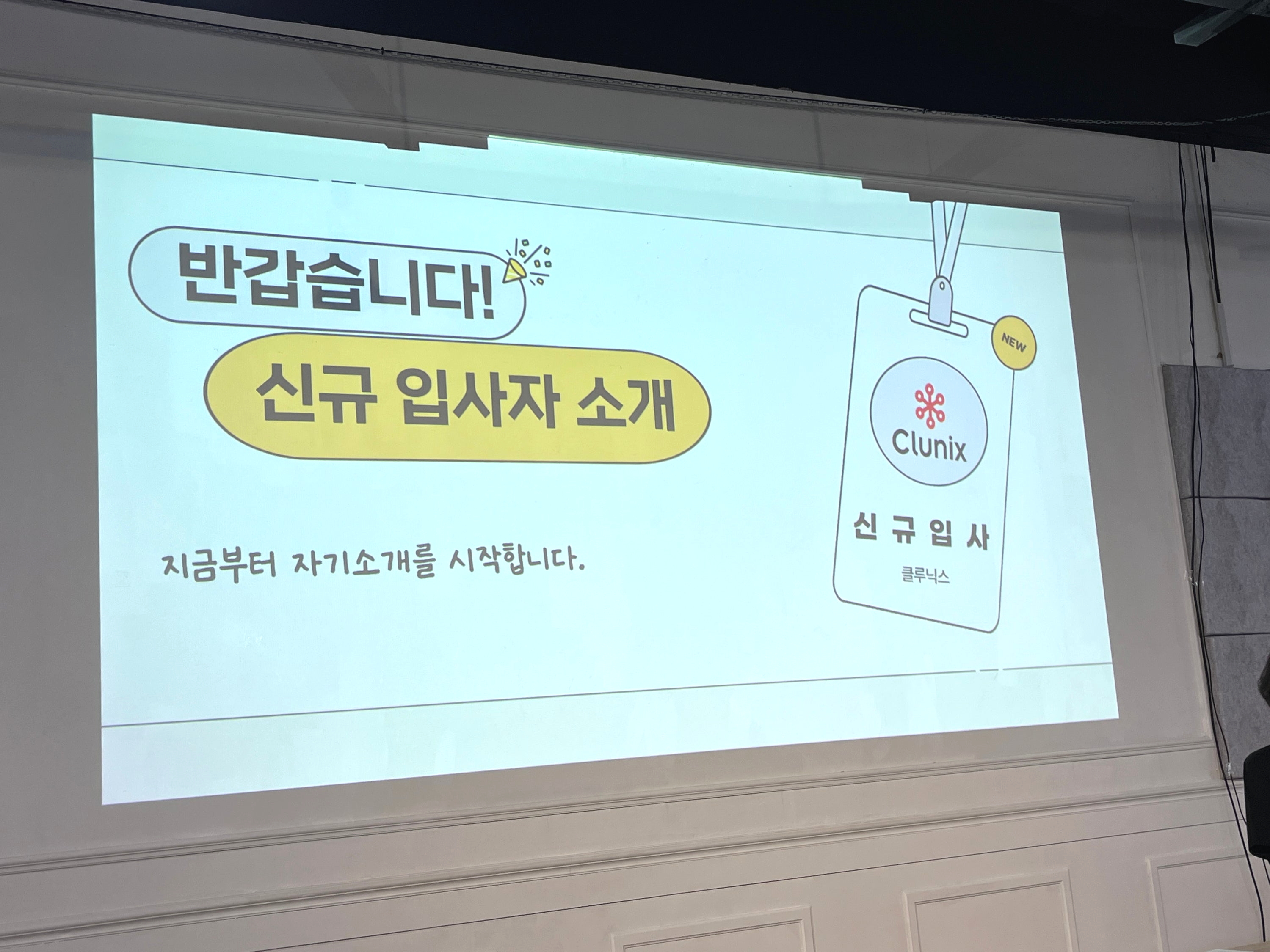 본인을 나타내는 키워드와 사진을 소개하며 전 직원 앞에서 첫 인사를 나누는 이 자리엔 따듯한 박수와 응원이 가득했어요. 앞으로 함께 만들어갈 시간들이 너무 기대되는 순간이었습니다.