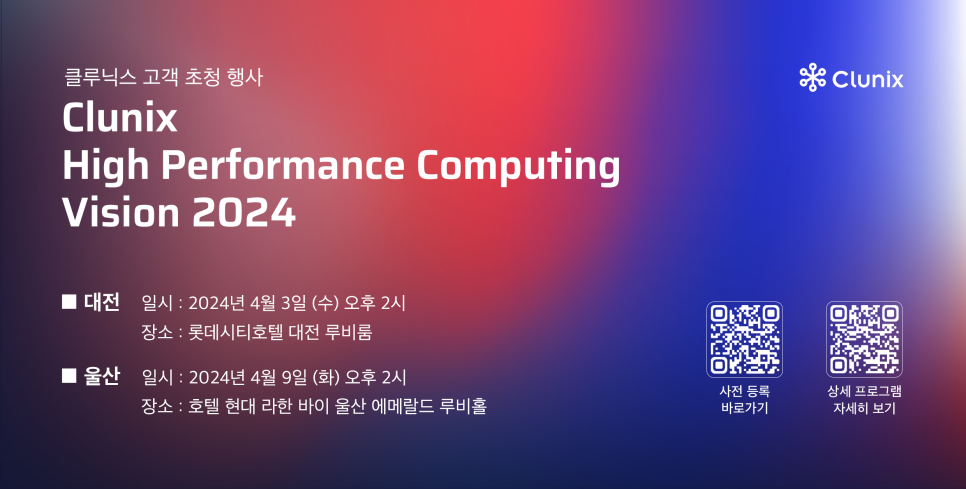 [클루닉스 High Performance Computing Vision 2024]✨최신 HPC 동향과 혁신 솔루션을 소개하는 행사에 초대합니다!