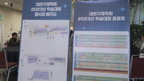 2023년의 대한기계학회 학술대회는 송도 컨벤시아 1층과 2층에서 진행되었어요. 약 45개 사가 기업 부스로 참가하고, 20개의 발표장에서 많은 발표가 이루어졌어요.