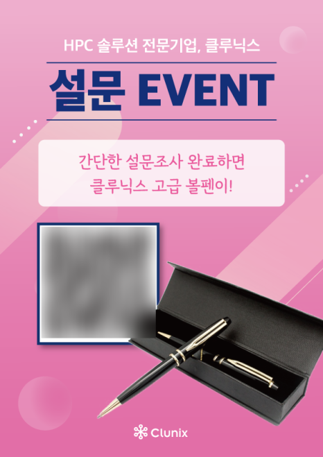 고성능 컴퓨팅(HPC) 자원 경험 유무를 묻는 간단한 설문을 진행해주시는 모든 분들께 클루닉스 로고가 각인된 고급 볼펜을 증정해 드렸습니다.
