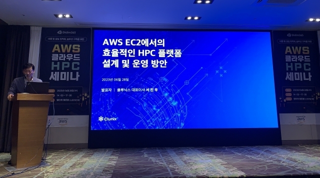![]() 클루닉스 서진우 대표가 효율적인 HPC 플랫폼 설계 및 운영 방안에 대해 발표했다. [ⓒ클루닉스] [디지털데일리 박세아 기자] 고성능 컴퓨팅(이하 HPC) 솔루션 기업 클루닉스는 '아마존웹서비스(이하 AWS) 클라우드 고성능 컴퓨팅(HPC) 세미나'에 참가해 'AWS 엘라스틱 컴퓨팅 클라우드(EC2)에서의 효율적인 HPC 플랫폼 설계 및 운영'을 주제로 발표했다.