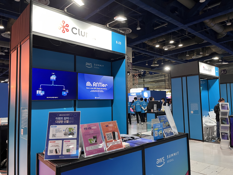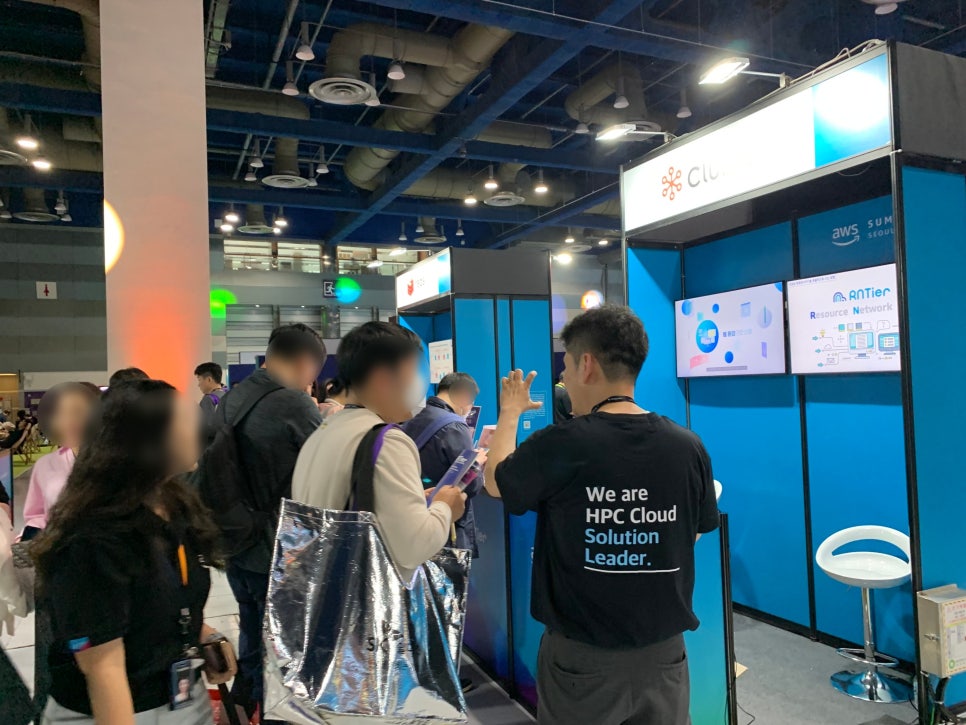 AWS 서밋에는 약 60개의 관계사가 참여하여 부스를 운영했습니다. 그런데 HPC(High Performance Computing; 고성능컴퓨팅)에 관한 부스는 저희 클루닉스 하나였다는 것! 그래서인지 최근 인공지능과 기술의 발달로 인해 중요성이 더욱 부각되고 있는 HPC에 관심이 있으신 분들이, 클루닉스에 와서 HPC에 관한 궁금증을 많이 해소하고 가셨습니다.