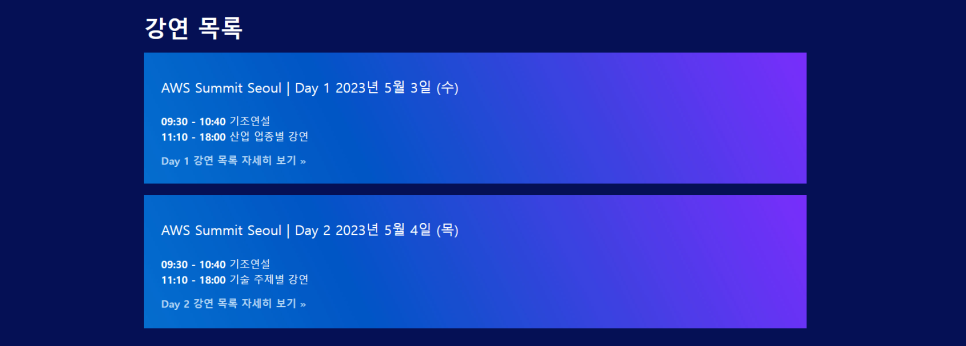 올해로 9회째를 맞은 국내 최대 규모의 IT 컨퍼런스인 AWS Summit Seoul이 5월 3일(수요일)부터 4일(목요일)까지 양일간 진행돼요. AWS 서밋 서울에서는 클라우드 기술에 대한 산업별, 기술별 90여 개의 강연이 진행되고, 이를 통해 최신 IT 트렌드를 배울 수 있어요. 강연 외에도 다양한 기업들과 함께 전시 박람회가 펼쳐지는데요.