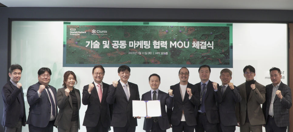 23년 3월 21일, 클루닉스가 한국 HPE(휴렛팩커드; Hewlett Packeard Enterprise)와 MOU를 맺게 되었습니다.