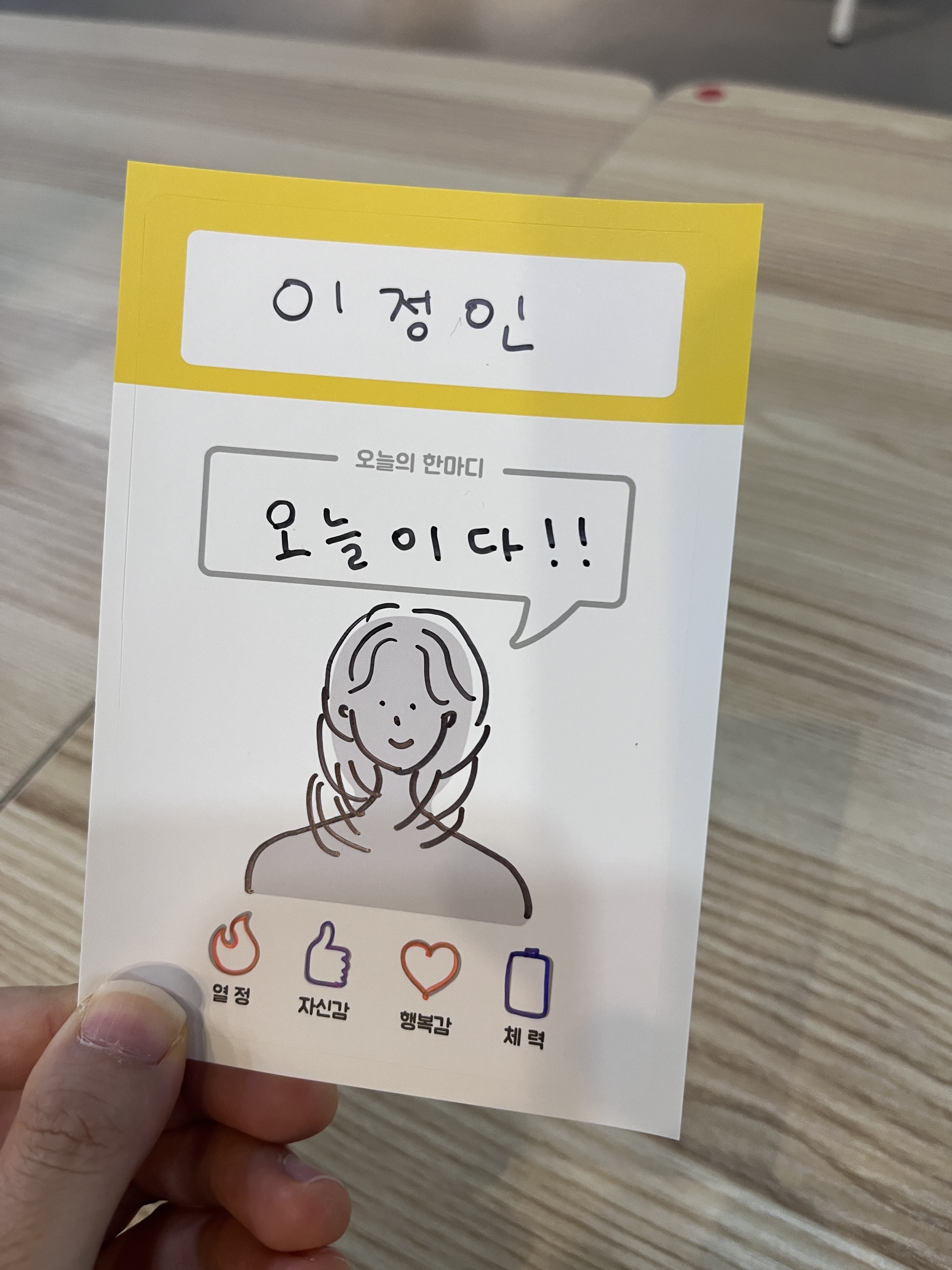 각자 오늘의 한마디와 함께 자신을 표현하는 캐릭터를 그려 넣으며 자연스럽게 대화를 시작했는데요.