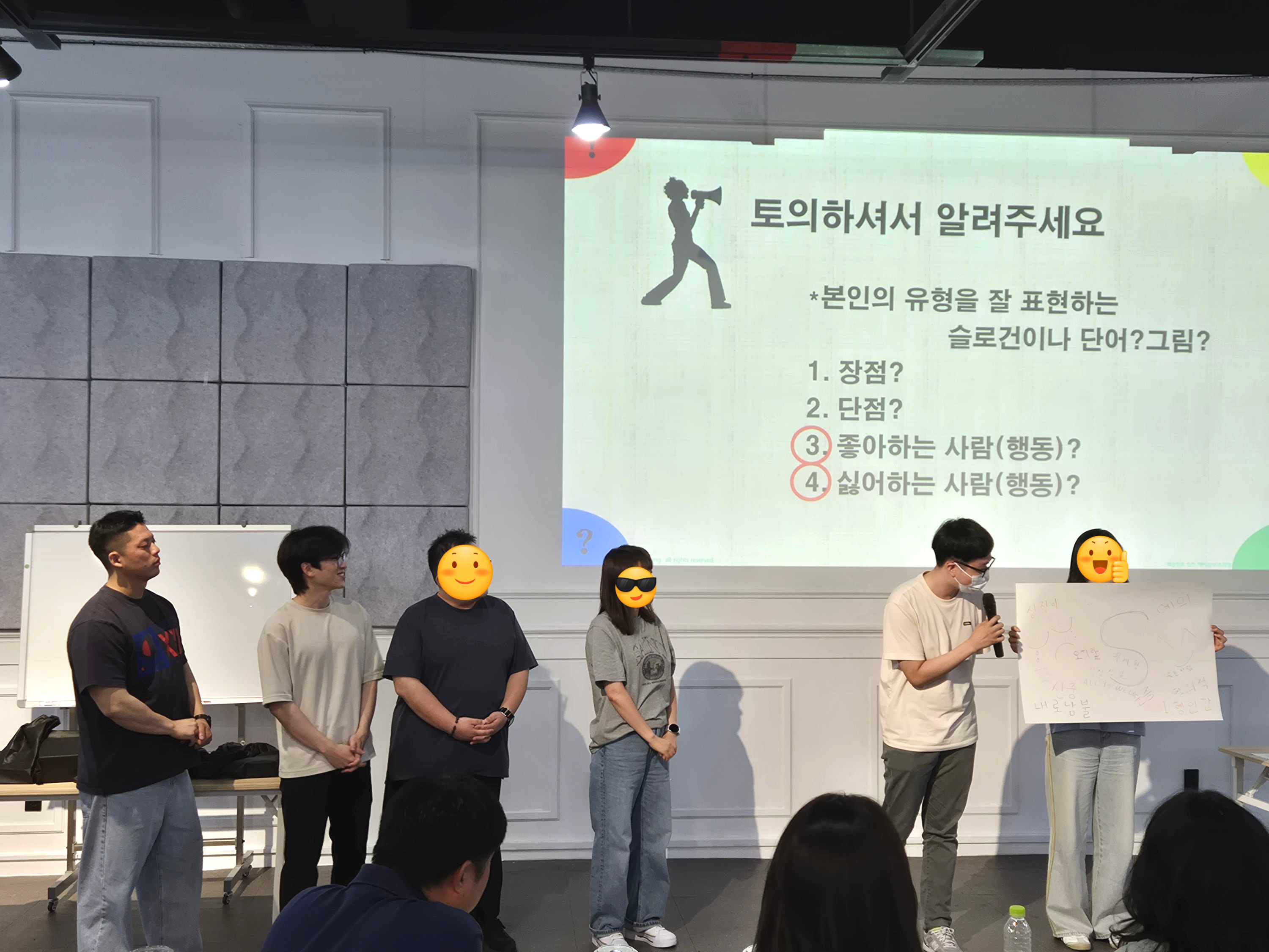 이후에는 'DISC 행동유형 진단'을 통해 서로의 성향을 이해하는 시간을 가졌어요.