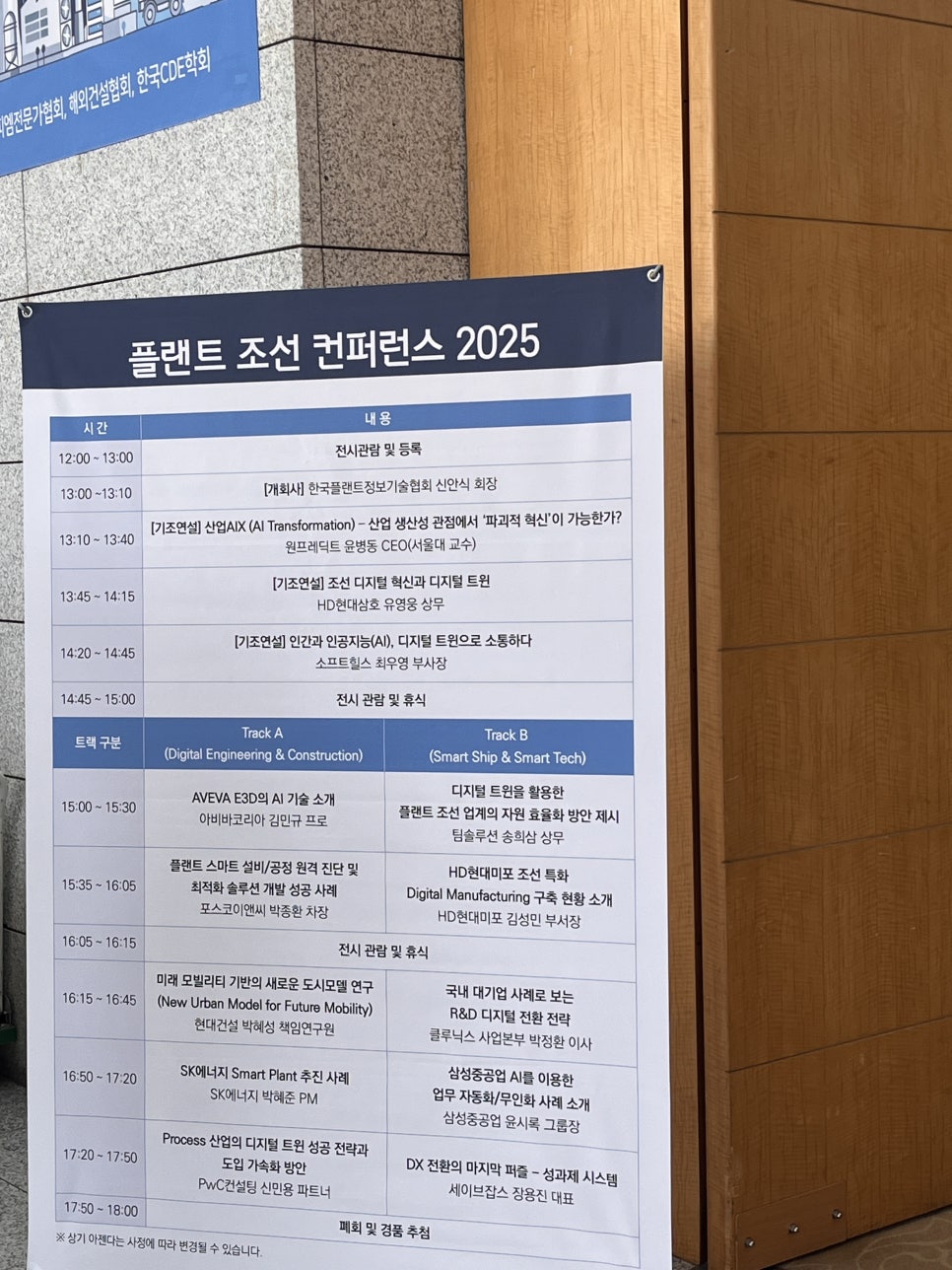 한국플랜트정보기술협회가 주최하는 플랜트 조선 컨퍼런스는 올해 21회차를 맞이하여 ‘AI 시대, 디지털 전환으로 여는 플랜트·조선 산업의 미래’를 주제로 개최되었습니다.